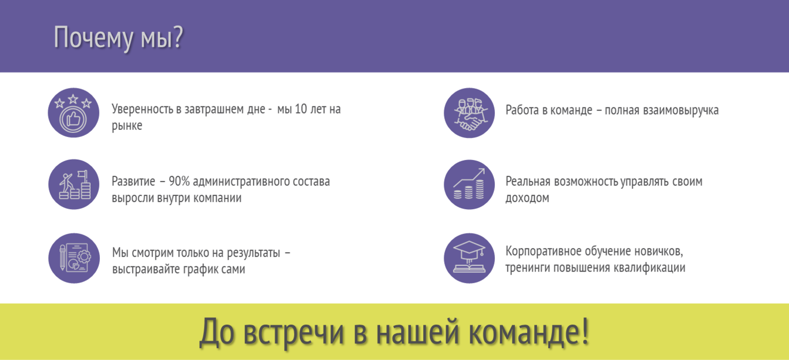 - Мы ценим и поощряем инициативность, что позволяет нашим сотрудникам достигать значительных успехов и быстро подниматься по карьерной лестнице.